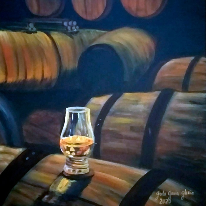 The designs in this LIMITED EDITION series of coasters correspond to original paintings from Gisela García Gleria's catalogue inspired by Scottish distilleries and the world of whisky.