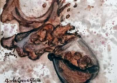 Cada cuadro es una búsqueda, donde el color y la expresividad de cada cepa se combinan con algunos toques de acrílico y carbonilla, dejando en el lienzo las memorias de su expresión. Con una fuerte impronta de libertad y juego, en esta serie busco plasmar diferentes momentos, en imágenes que huelen a uva tinta y celebración, a terruño y tradición, a familia, amigos, historias y calidez.